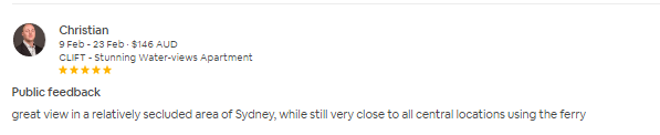 great view in a relatively secluded area of Sydney, while still very close to all central locations using the ferry