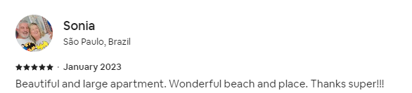 Beautiful and large apartment. Wonderful beach and place. Thanks super!!!