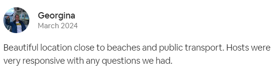 Beautiful location close to beaches and public transport. Hosts were very responsive with any questions we had.