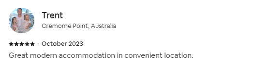 Beautiful well presented unit, lovely owners, helpful property manager. Had everything we needed for a 3 week stay and more. Every aspect of guest comfort was thought through and nothing was done on the cheap. Our first AirBnB experience and we were very impressed.