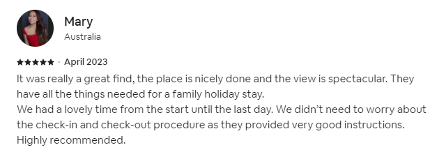 We had a lovely time from the start until the last day. We didn’t need to worry about the check-in and check-out procedure as they provided very good instructions.