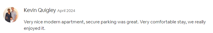 Very nice modern apartment, secure parking was great. Very comfortable stay, we really enjoyed it.