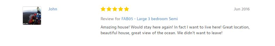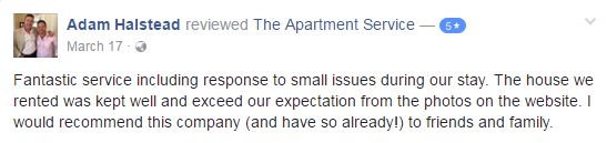 Fantastic service including response to small issues during our stay. The house we rented was kept well and exceed our expectation from the photos on the website. I would recommend this company (and have so already!) to friends and family.
