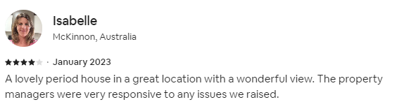A lovely period house in a great location with a wonderful view. The property managers were very responsive to any issues we raised.