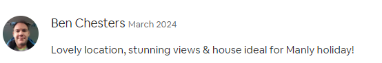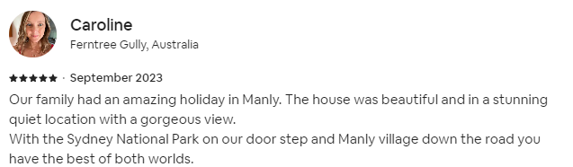 Our family had an amazing holiday in Manly. The house was beautiful and in a stunning quiet location with a gorgeous view.