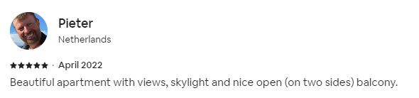 We loved staying in the this apartment and had lots of quality time on the balcony. All appliances were very efficient, except the dryer and which was quickly replaced by a new one. The Apartment Service was excellent throughout and we highly recommend it to anyone wanting accommodation in this area. We plan to stay here in the future.
