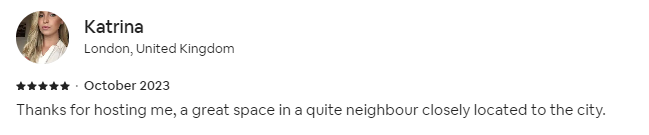 Thanks for hosting me, a great space in a quite neighbour closely located to the city.