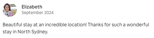 Beautiful stay at an incredible location! Thanks for such a wonderful stay in North Sydney.