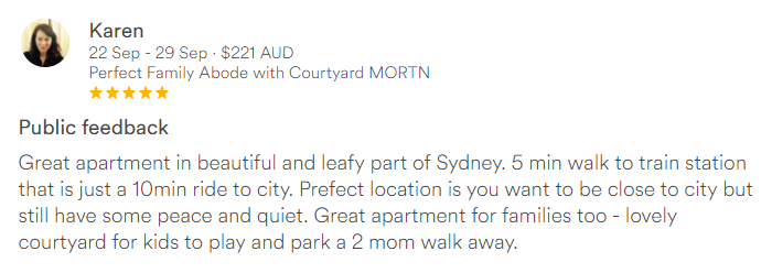 It was peaceful and comfortable stay near parks, Sydney Harbour, trains, restaurants and even a grocery store