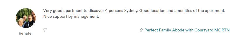 Very good apartment to discover 4 persons Sydney. Good location and amenities of the apartment. Nice support by management.