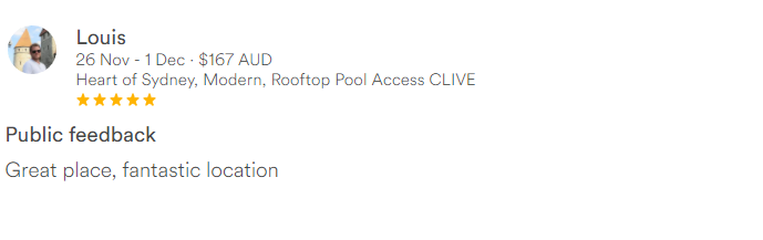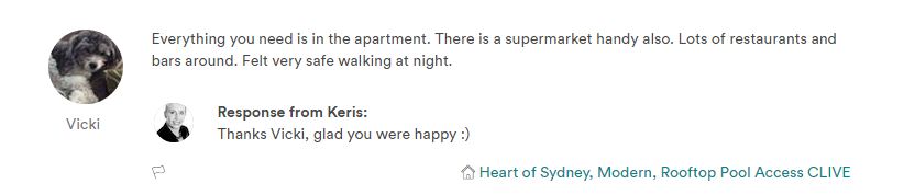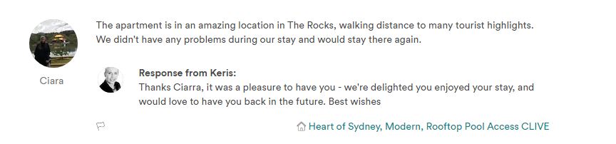 The apartment is in an amazing location in The Rocks, walking distance to many tourist highlights. We didn't have any problems during our stay and would stay there again.