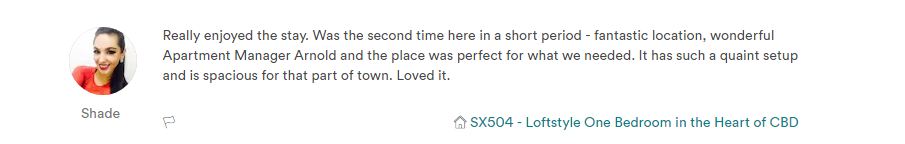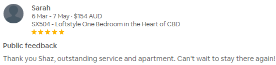 Thank you Shaz, outstanding service and apartment. Can't wait to stay there again!