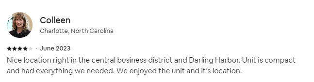 Nice location right in the central business district and Darling Harbor. Unit is compact and had everything we needed. We enjoyed the unit and it’s location.