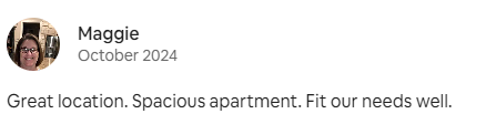 A nice spacious clean flat with a pleasant balcony. The gym and swimming pool an added bonus. Communication with Ana was very good and an issue with the patio door was quickly and efficiently resolved. All in all a great place to stay 5*